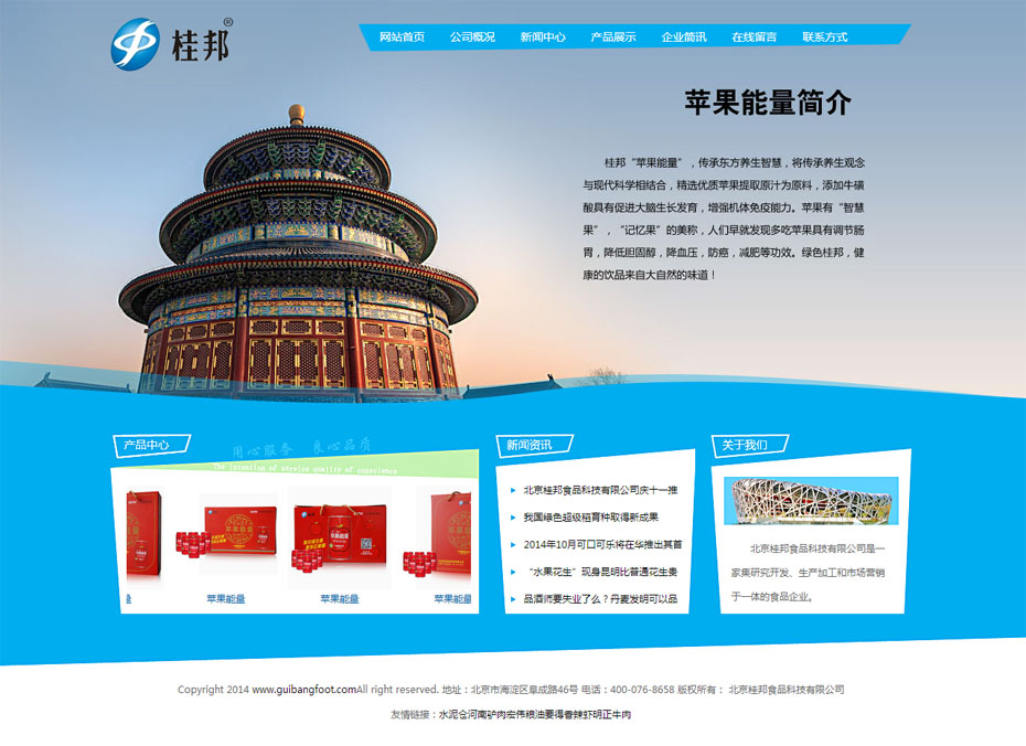 案例介紹:北京桂邦食品科技有限公司是一家集食品飲料,研究開(kāi)發(fā)、生產(chǎn)加工和市場(chǎng)營(yíng)銷于一體的 食品飲料企業(yè)。企業(yè)現(xiàn)有員工200余人,在江蘇、重慶、山東、河南等地設(shè)有生產(chǎn)基地。高效 專業(yè)的研發(fā)隊(duì)伍、先進(jìn)的生產(chǎn)設(shè)備、前沿的管理理念,確保了產(chǎn)品的品質(zhì)穩(wěn)定、口感醇香,深 受消費(fèi)者喜愛(ài)和合作伙伴的信賴。目前營(yíng)銷網(wǎng)絡(luò)遍布全國(guó)20多個(gè)省市。